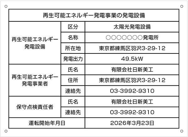 TH-12再生可能エネルギー発電事業の発電設備 標識 文字入れ